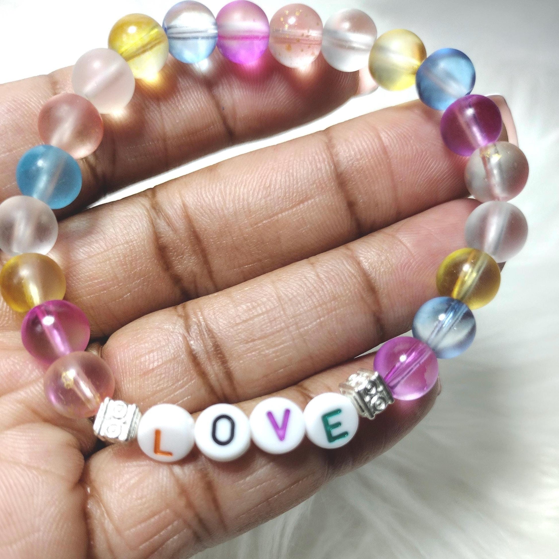 New Rainbow Love Glass Beads Bracelet
