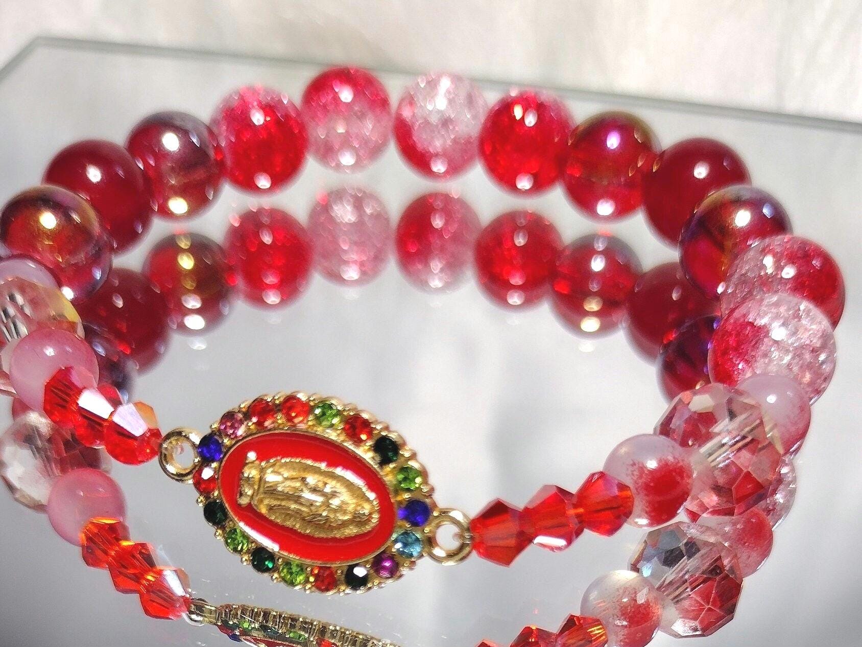 Red virgin Mary Glass Beads bracelet with bicone crystal glass beads, and Glass Beads.